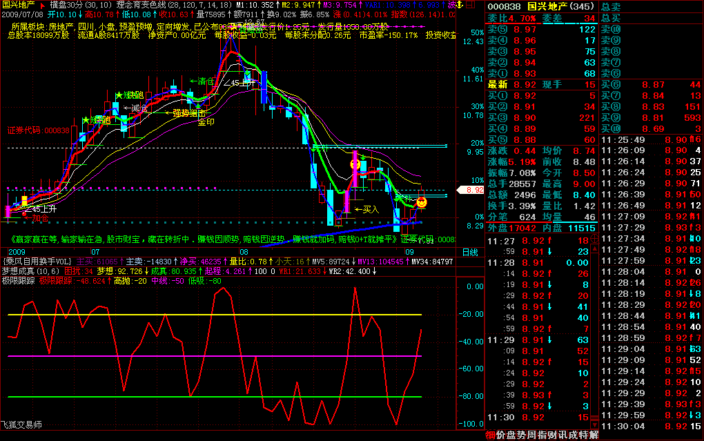分时可抓波段买卖高低点;对大盘同样适用。可根据自己习惯改变各周期参数。
