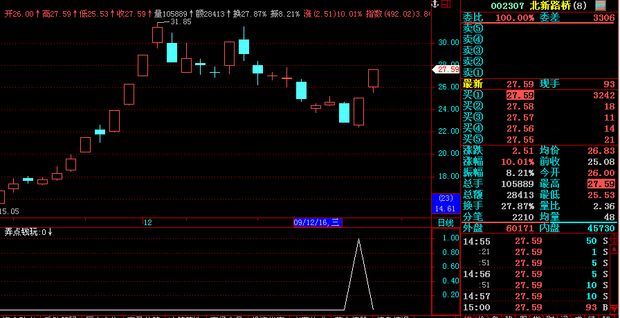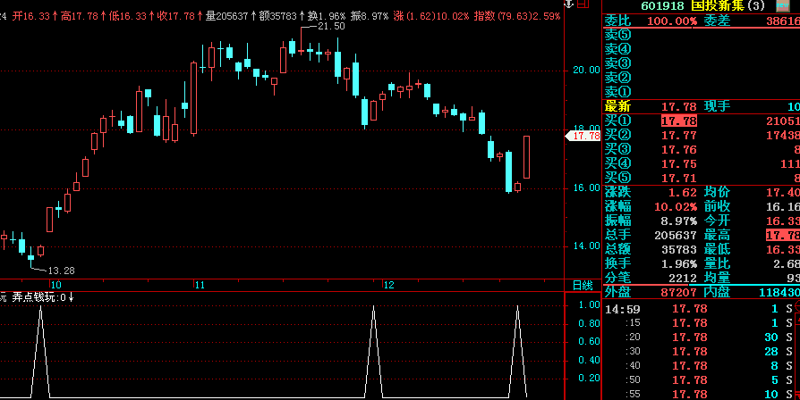 相关简介:两天就有很多朋友问我:你凭什么判断大盘是底? 严格地说,我并没有说,大盘这就是底。 我只是说:这可能是底。 理由何在? 1、根据中国五浪的研判依据成交额。 2、参考下面的选股指标。 图示 : 朋友们可能会问: 用扩展数据吗?因为好像你的一般高层次的指标都使用扩展数据,可我很懒,很烦天天收盘的。 哈哈哈 不用,这是一段通用源码,你可以导入你的任何软件(同花顺我没有试过、不知道可以否?请自己查验)。 朋友们也许还会问: 从图上看,看大盘还算将就,不知道看个股行吗? 哈哈哈 既然叫做选股那当然主攻