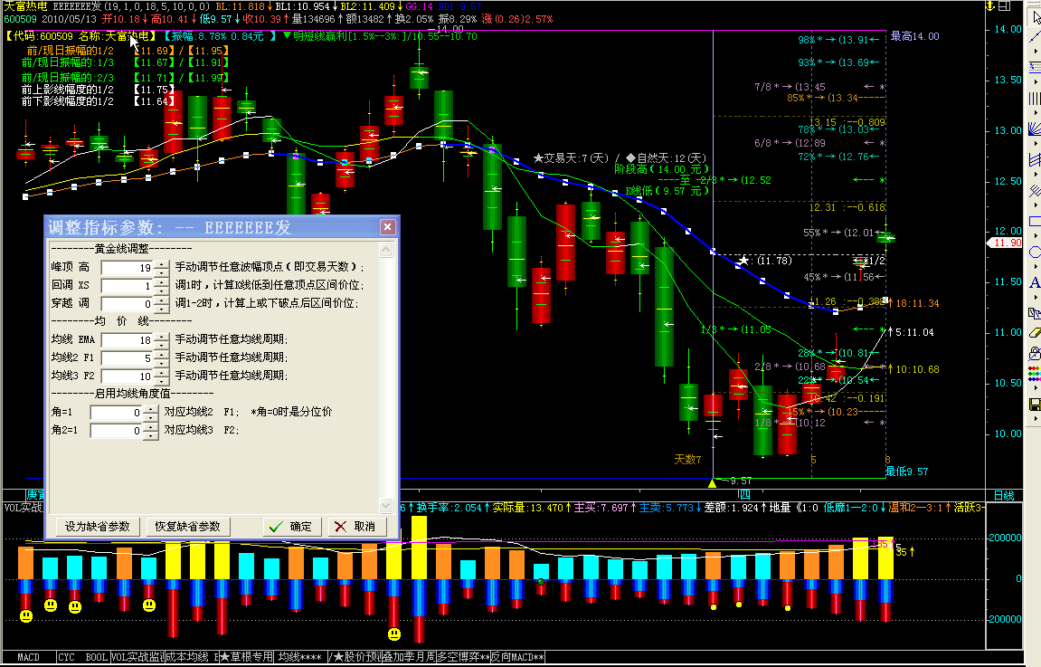 此指标是以切线(黄金分割)均价线(MA EMA) 均价线角度 来统