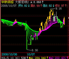 - STICKLINE(((VAR1 > VAR2) AND (VAR1 < MA21)),CLOSE,OPEN,2,0),colorFF66FF;