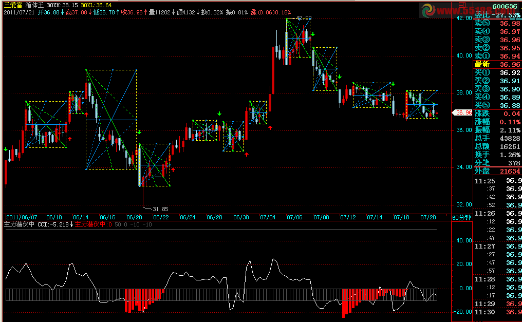 相关简介:箱体 主图源码 + 主力潜伏中 副图源码 感谢原作!