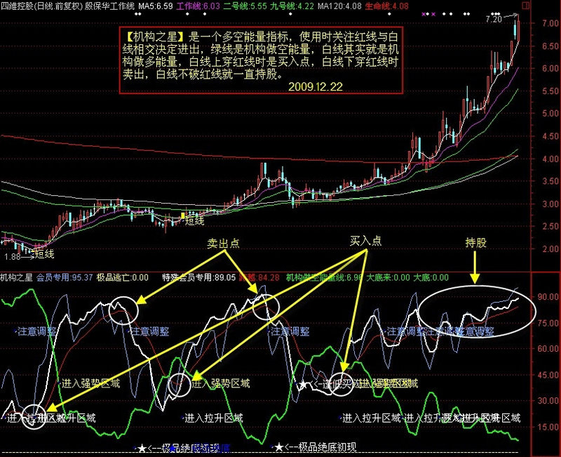 - DRAWTEXT(CROSS(特殊会员专用,跨越) ,大底+20,'进入拉升区域'),LINETHICK1;