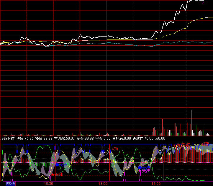 本指标是我转自冷眼老师的,名字叫冷眼分时,如果大家喜欢就拿去用吧!
