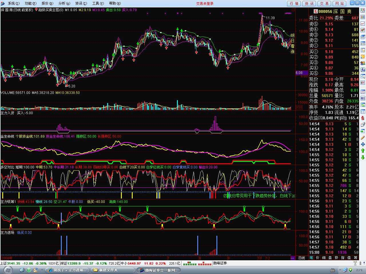 - 主力进场:=IF(VAR5S>REF(VAR5S,1),VAR5S,0)*1.1,LINETHICK1,COLOR00FFFF;
