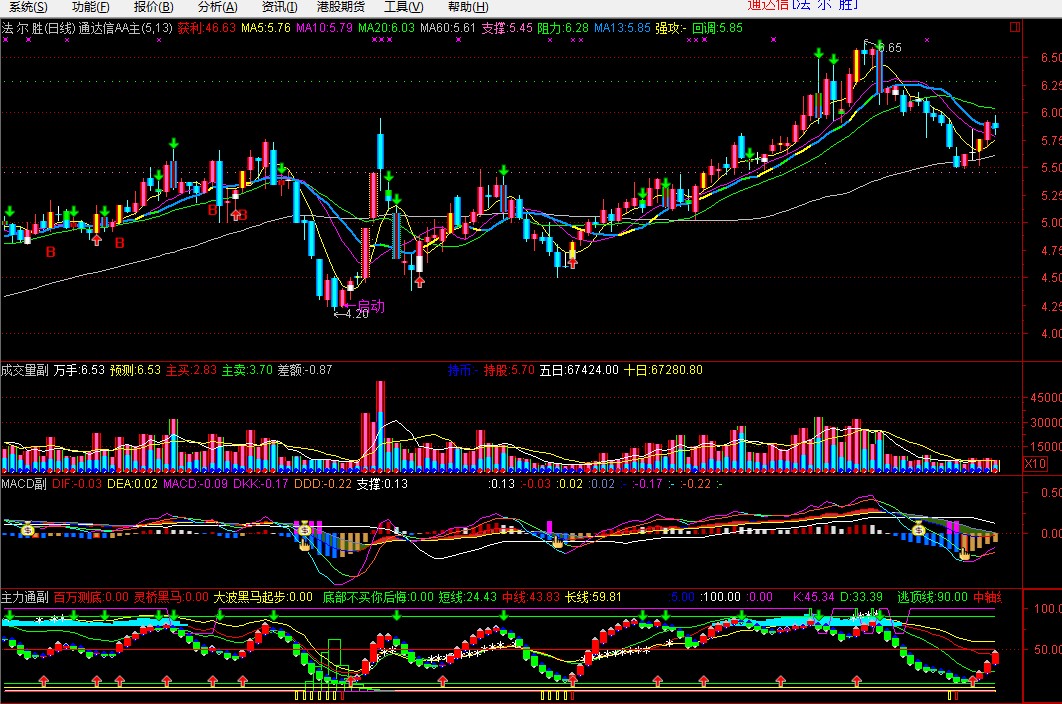 相关简介:C/C++ www.gszb.com 股票公式指标网提供 Code 复制内容到剪贴板 DIF:(EMA(CLOSE,12)-EMA(CLOSE,26)),COLORRED,NODRAW; DEA:EMA(DIF,9),COLOR00FFFF,NODRAW; MACD:2*(DIF-DEA),NODRAW; DIFK:=EMA(DIF,3); DIFD:=EMA(DIFK,3); DKK:4*DIF-3*DEA,COLORFF00FF,NODRAW; DDD:EMA(D