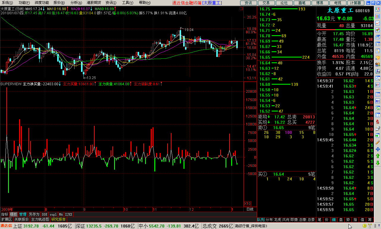 - 主力净买量:(LARGEINTRDVOL-LARGEOUTTRDVOL),LINETHICK2;