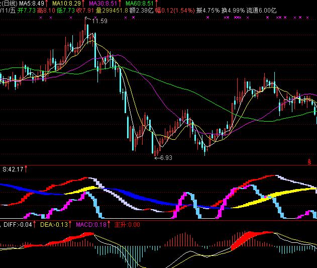 2.股票下跌连续出现青色柱线,在青色柱线没跌到底线消失之前不要急于抄底(个别情况例外),要经过几个交易日或者更长时间才能出现转机,这时再择机介入(用这个指标查看一下历史走势就能发现规律).