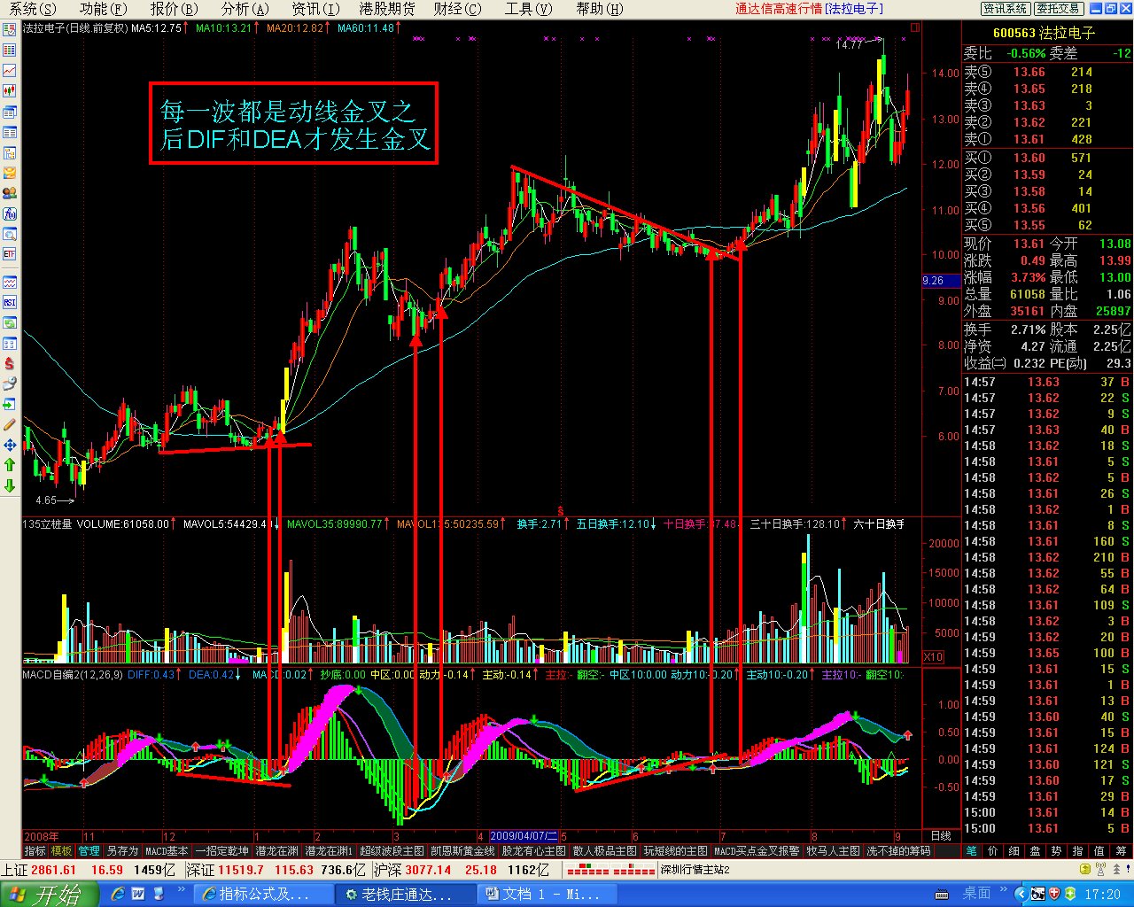 - 动力:MA(MACD,5),,COLORYELLOW,LINETHICK2;