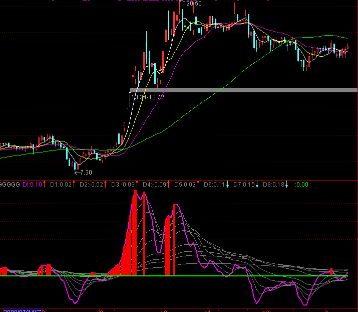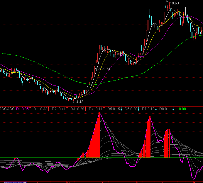 相关简介:C/C++ www.gszb.com 股票公式指标网提供 Code 复制内容到剪贴板 DI:EMA(CLOSE,4)-EMA(CLOSE,13),COLORMAGENTA,LINETHICK2; D1:EMA(DI,5),COLORGRAY; D2:EMA(DI,10),COLORGRAY; D3:EMA(DI,20),COLORGRAY; D4:EMA(DI,30),COLORGRAY; D5:EMA(DI,60),COLORGRAY; D6:EMA(DI,90),