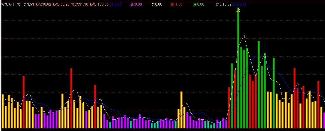 - 换①:SUM(VOL/CAPITAL*100,10),COLORLIRED,NODRAW;
