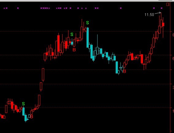 - STICKLINE(((OPEN>CLOSE)AND(VAR2>MA(VAR3,6))),OPEN,(CLOSE-0.03),3.05,0),COLORRED;