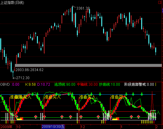 - 瞄准底部:(CROSS(RSI,11))*(100),COLORRED;