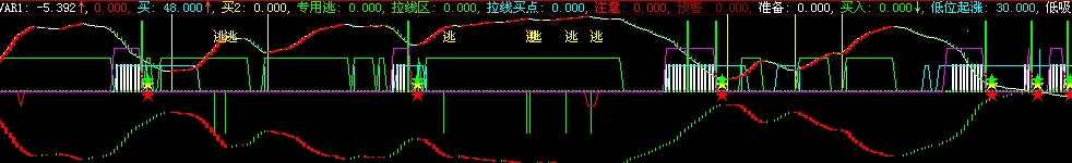- 专用逃: IF(专用< REF(专用,1) AND 专用>79,-48,0),STICK,LINETHICK1,COLOR00FF00;
