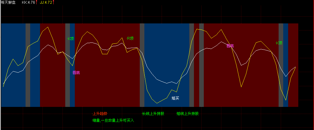 - DRAWTEXT(B2,JJ-3,'K底'),COLORFF44FF;