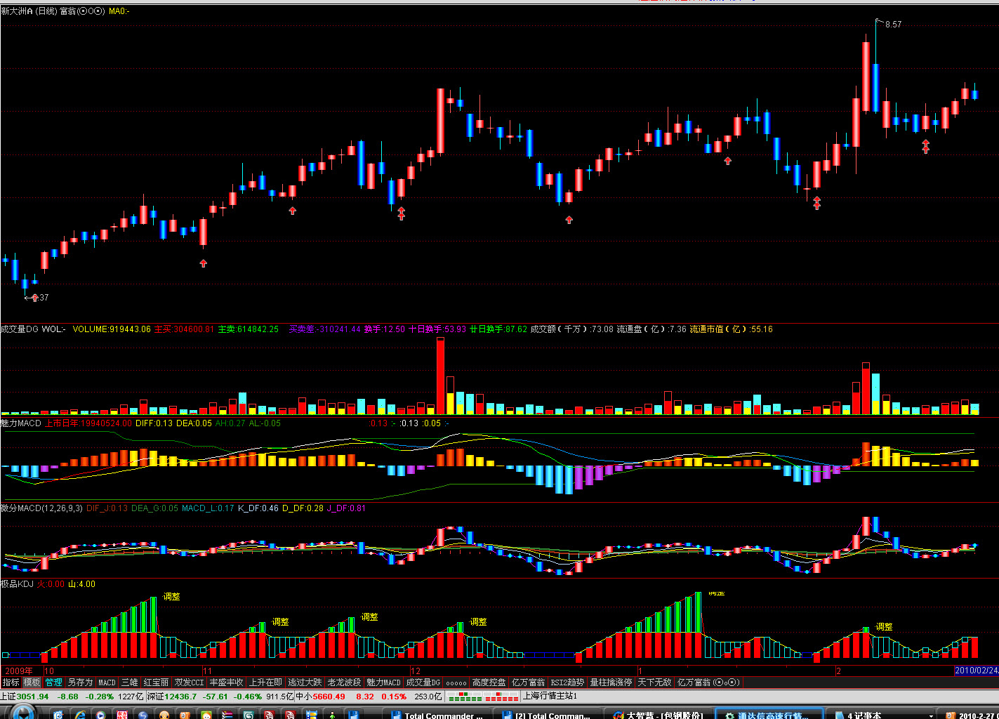 - 观望: STICKLINE(山=0 AND 火=0,0,1,4,1), COLORBLUE;