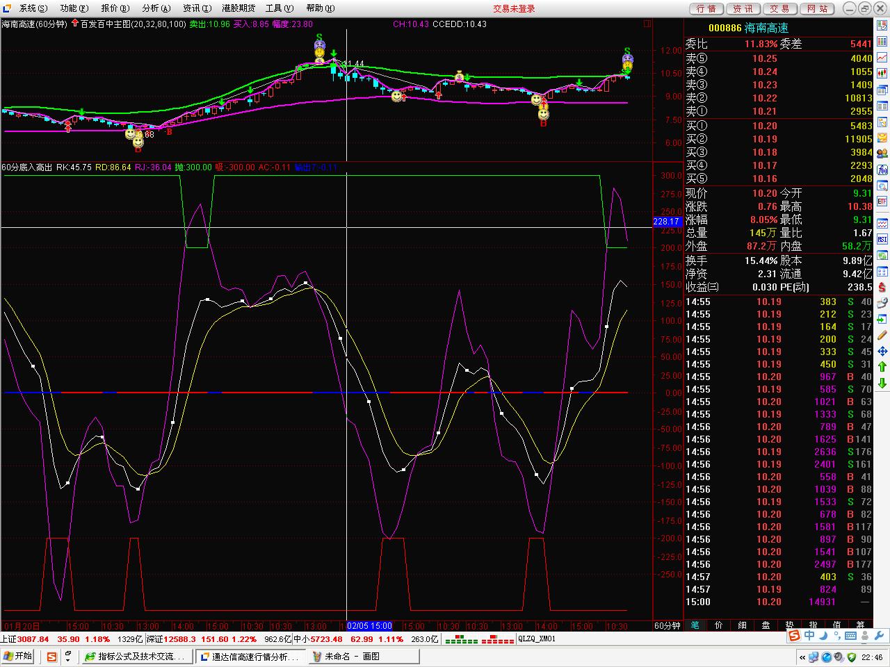 相关简介:C/C++ www.gszb.com 股票公式指标网提供 Code 复制内容到剪贴板 RK:SMA(CCI,3,1);RD:SMA(RK,3,1);RJ:3*RK-2*RD; 头:=390+REVERSE(EMA(RJ,1)); 底:=-290+REVERSE(EMA(RJ,1)); 抛:IF(RJ头,200,300),COLORGREEN; 吸:IF(RJ底,-200,-300),COLORRED; 现价:=(C+L+H)/3; AO:=SMA(现价,5,1)-SM