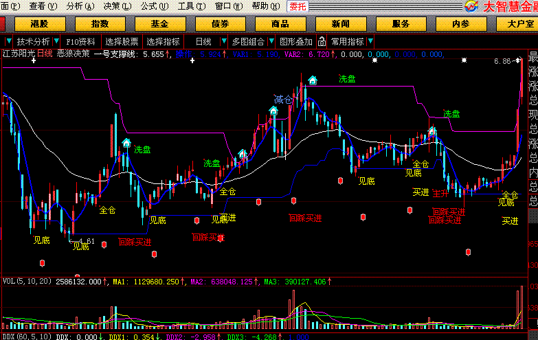 相关简介:通达信恶狼决策主图,已弄成大智慧新一代 无加密、无时限、无未来的【三无产品】 再上一个配套的全仓选股