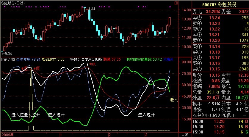 - DRAWTEXT(CROSS(特殊会员专用,跨越) ,大底+20,'进入拉升'),LINETHICK1;