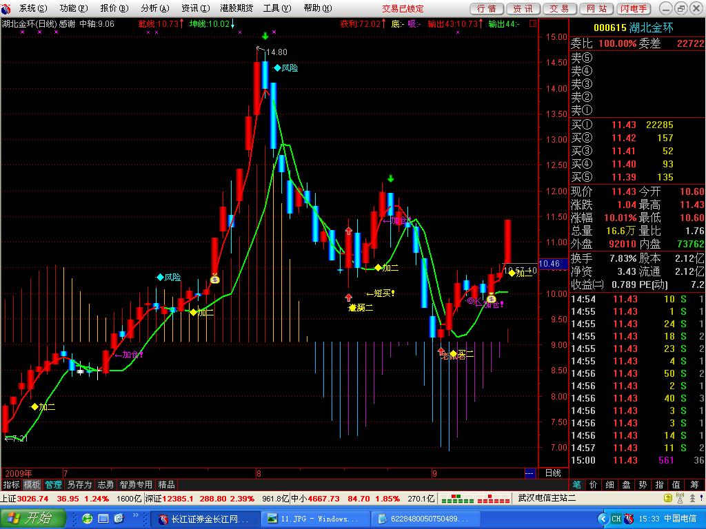 #p##e#我刚进理想的时候,发现了这个主图,将MACD柱子趋势加到了主图显示中,还有很不错的买卖提示,今天本人不才,再加入一些优秀的买卖提示和趋势线变色,回报理想,回报坛友!原作者主图叫感谢,我也叫感谢吧!