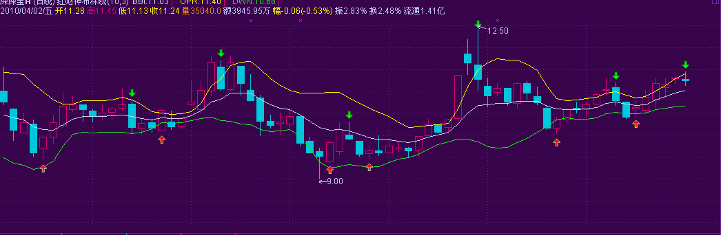 - DRAWTEXT(VAR8=10 AND FILTER(VAR8=10,5),LOW*0.93,'接近底部') COLORMAGENTA;