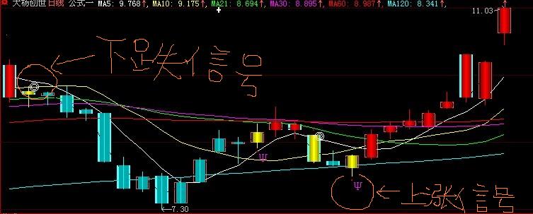 - ME:EMA(PW1,8),COLORSTICK,ColorFFFFFF;ME1:MA(ME,3),