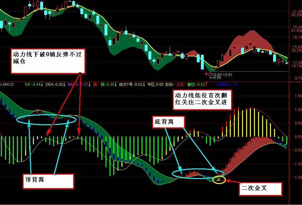 - 主动:IF(MACD>=动力 AND 动力<=中区,动力,DRAWNULL),COLORYELLOW,LINETHICK2;