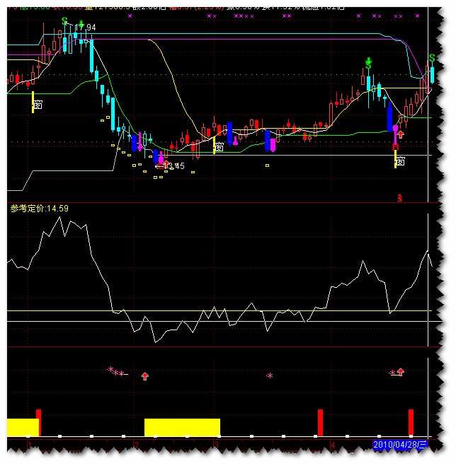 相关简介:涨时重势,跌时重资,送给大家两指标,帮股友们分别以下估值合理的股票,高手飘过,别撇鞋;新手可以交流............ 图1(低估高估) 有未来也没关系,参考估值,不涉及买卖点。 该指标的思想是根据个股的财务指标计算出个股的一个参考的合理定价,将其与个股当前的股价进行对比,用来看该股当前的股价是被低估了还是高估了。 最新价:C; 市盈率:=IF(FINANCE(33)0,DYNAINFO(39),0)*0.35; 每股收益:=IF(FINANCE(33)0.01,FINANCE(33)*0.