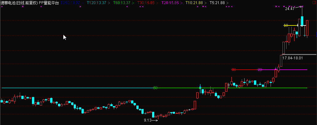 - T20:IF(CURRBARSCOUNT<=N20,CONST(IF(PT20=0,C,REF(C,PT20))),DRAWNULL),COLORDD00DD,LINETHICK2;
