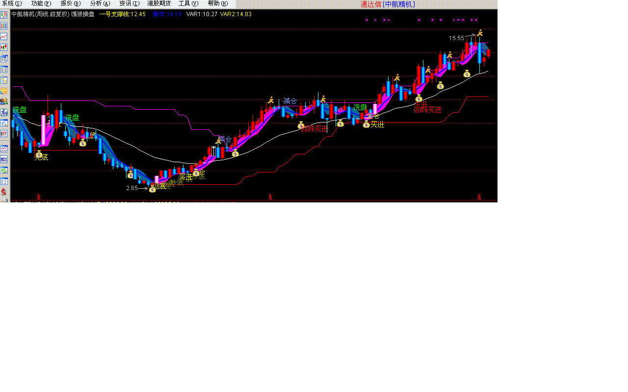 - VAR3:=(2*CLOSE+HIGH+LOW)/3;{可将3该为4,信号少点}