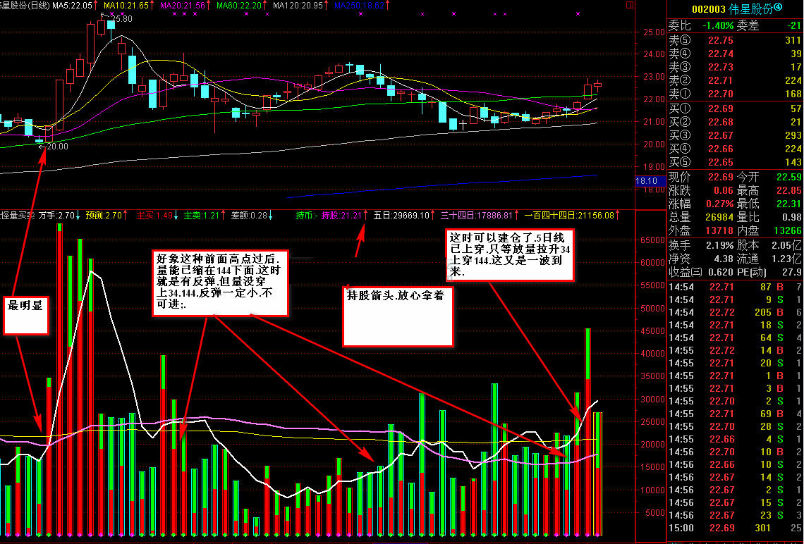 通达信量能买卖指标 (主动买、主卖、持币、持股 源码)