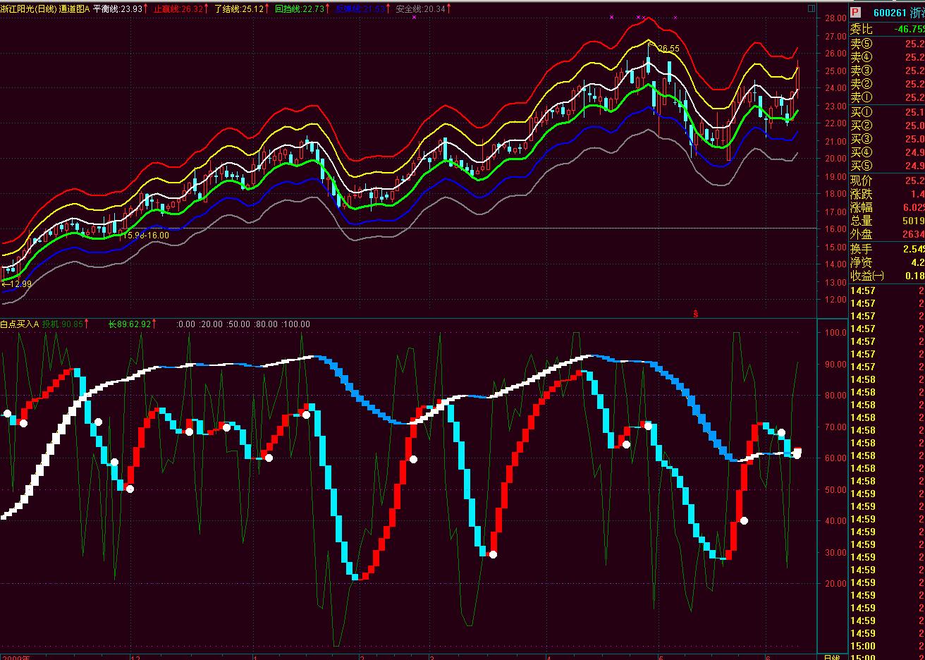 - 平衡线: EMA(EMA(EMA(HIGH+K1,3),4),4),COLORWHITE,LINETHICK2;