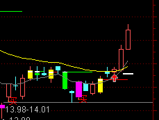 - STICKLINE(ISLASTBAR,REF(EMA(C,14),1),REF(EMA(C,14),1)*0.998,5,0)COLORWHITE;
