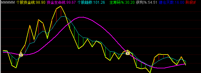 - 资金生命线:MA(FORCAST(个股资金线,20),6),COLORMAGENTA,LINETHICK2;