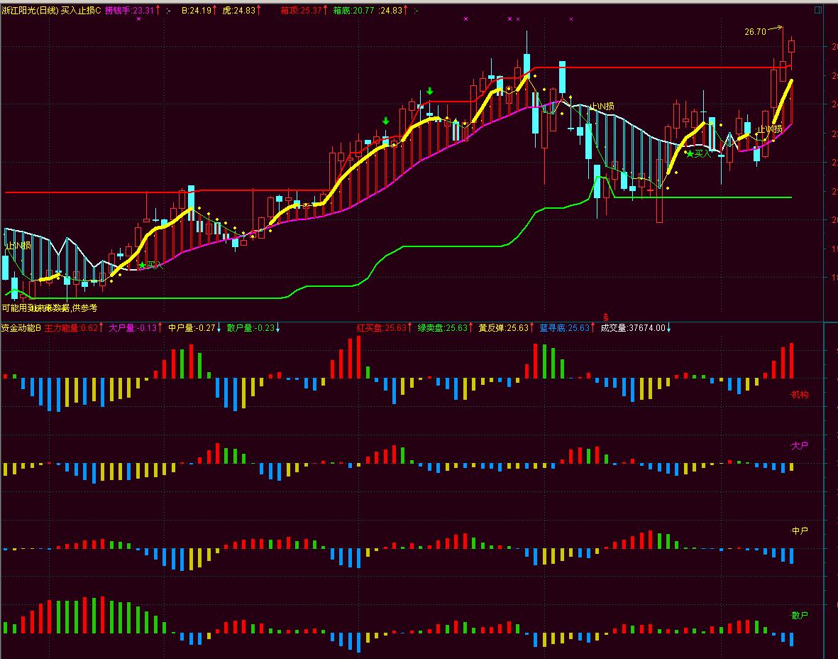 - 捞钱手:IF(((SSL>MM)),SS,SA),COLORFF00FF,LINETHICK2;