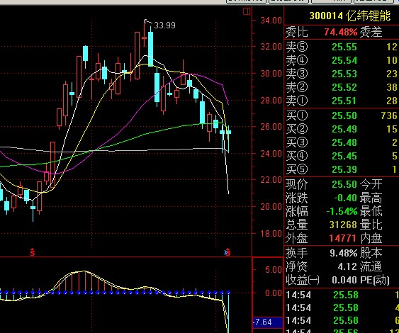 相关简介:通达信顶底先知附图源码 {公式在线提供: www.gszx.com.cn } 复制内容到剪贴板 VAR1:=(2*CLOSE+HIGH+LOW+OPEN)/5; VAR2:=EMA(EMA(EMA(VAR1,4),4),4); SJ:(VAR2-REF(VAR2,1))/REF(VAR2,1)*100,COLORSTICK; SD:MA(SJ,2); SK:MA(SJ,1); VAR3:=CROSS(SK,SD)ANDSK0; VAR4:=CROSS(SK,0);