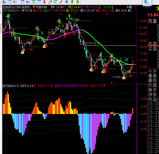 相关简介:通达信新MACD副图源码 {公式在线提供: www.gszx.com.cn } C/C++ www.gszb.com 股票公式指标网提供 Code 复制内容到剪贴板 P:=13;S:=5;M:=1; DIFF:EMA(C,S)-EMA(C,P); DEA:EMA(DIFF,M),COLORRED; MACD:2*(DIFF-DEA),COLORSTICK; P1:=P;S1:=S; DIFF1:EMA(C,S1)-EMA(C,P1); DEA1:EMA(DIFF,M)