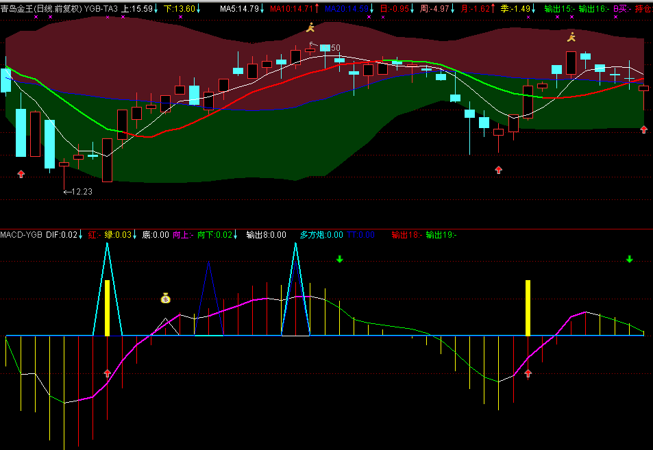 - DRAWICON(B1>0,DIF*1.21,1);{底背离}