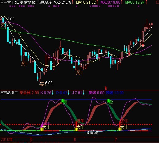 - DRAWTEXT(底背离,-0.6,'底背离'),COLORWHITE;