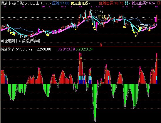 捕捞季节指标:短线波段操作的买卖指标,稳定性强、成功率高、操作简单;该指标包含两个部分:一是彩柱,表示这个个股的上涨能量,一般处于绿色彩柱区域是量能积累区域;二是买卖点的确认,这一点是最重要的,捕捞季节指标除彩柱外还包括两条线分别是粉色和黄色线,当粉色线上穿黄色线时为捕捞金叉买进信号,当粉色线下穿黄色线时为捕捞死叉卖出信号。