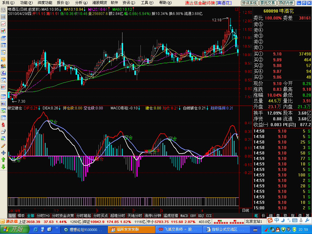 - MACD彩柱:(DIF-DEA)*2,COLORSTICK;
