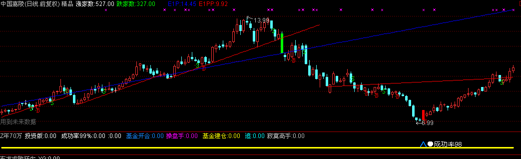 - DRAWTEXT(投资版<0 AND REF(投资版,1)=0,-0.5,'●成功率97%');