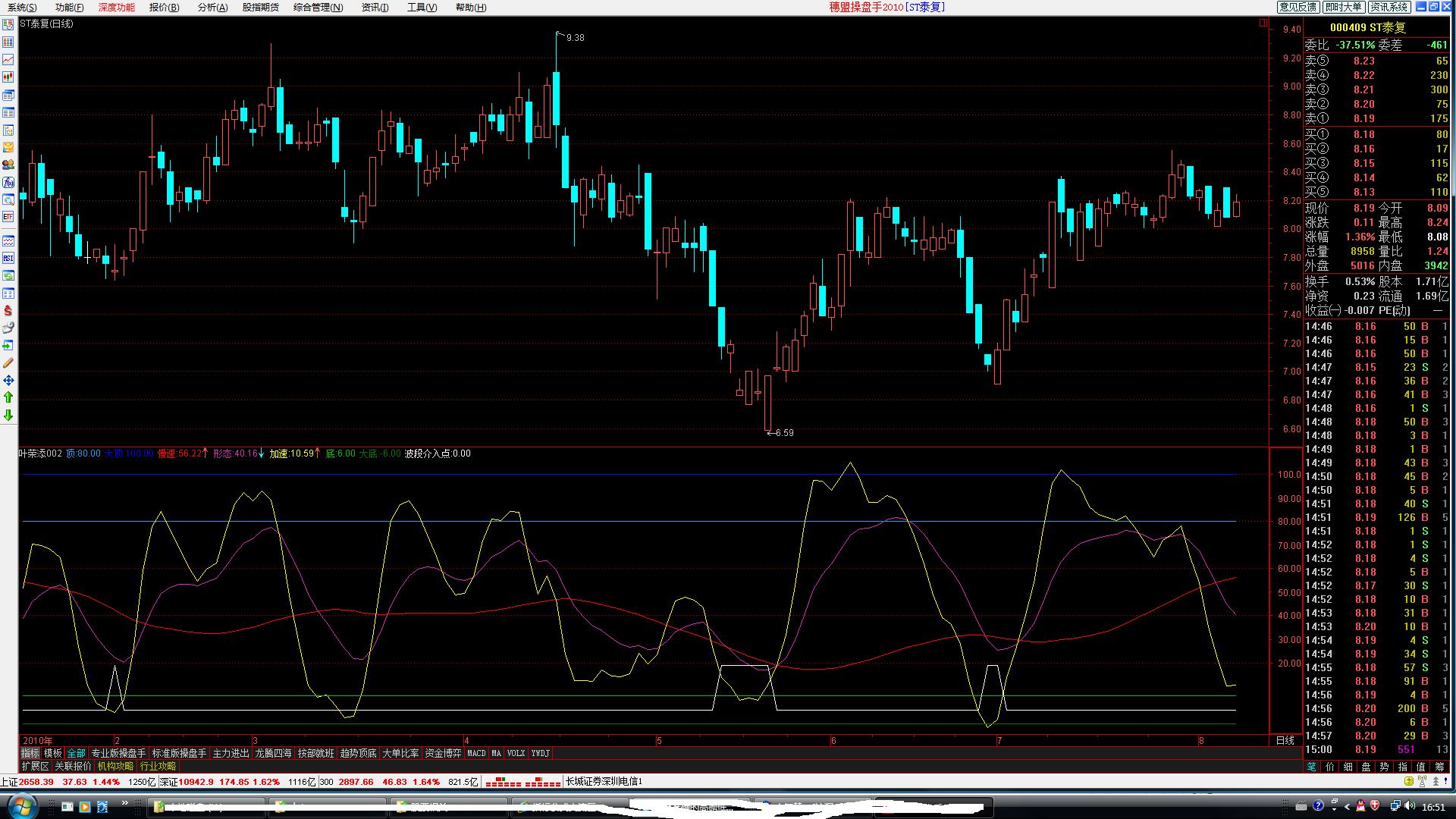 - 加速: EMA(3*VARB-2*VARC,3),COLORYELLOW;