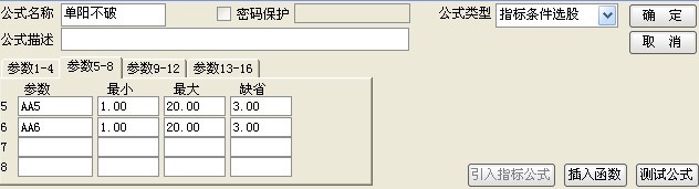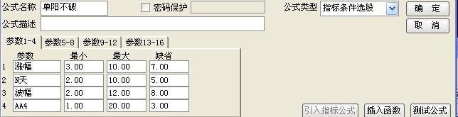 相关简介:通达信专用源码单阳不破选股 第一个:单阳不破选股公式 选股理论是这样设计的:前几日出现一根大阳(大阳涨幅可以自行调节),然后在后来数天内出现股价不跌的横盘走势(连续几天总涨幅可以调节),最后一天必须是缩量的,一般在相对缩量严重的那一天买入,第二天涨幅都会不错!公式去除了ST股,去除了大盘股,去除了股价高于30元的股(个人习惯,一直不喜欢高价股,原因是买过188元的股,后来跌到135元,心理障碍!) 所有参数都可以自己调节,大家自己看看吧,觉得好就给偶加点分,后面还有自己整合,正在使用,也非常实用
