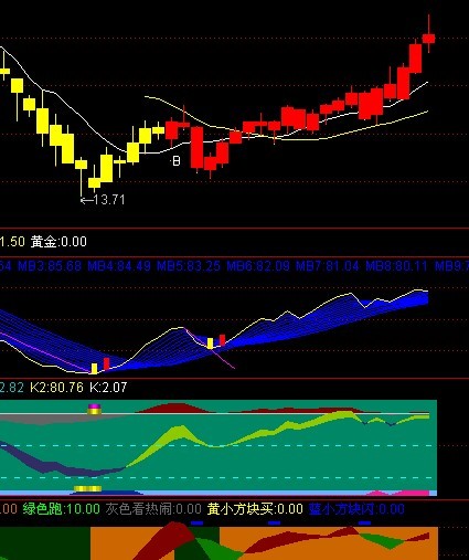 相关简介:通达信天下无敌罕见的波段划线选股指标源码附图 C/C++ www.gszb.com 股票公式指标网提供 Code 复制内容到剪贴板 MB1:=EMA(WINNER(C)*100,5),COLORYELLOW; MB2:EMA(MB1,2),COLORBLUE; MB3:EMA(MB2,2),COLORBLUE; MB4:EMA(MB3,2),COLORBLUE; MB5:EMA(MB4,2),COLORBLUE; MB6:EMA(MB5,2),COLORBLUE; M