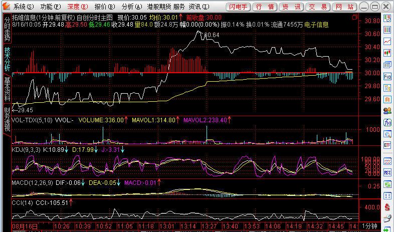 相关简介:通达信变通的分时图 在1分钟的K线图上显示分时走势图,就可任意增减分时指标,并可任意放大、缩小。 {公式在线提供: www.gszx.com.cn }