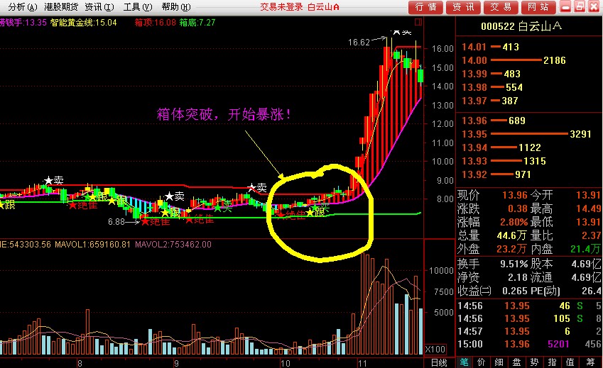 '--中期坏'),COLORF0F000; - DRAWTEXT(A>B ,箱底,'--短期好'),COLOR00FFFF;