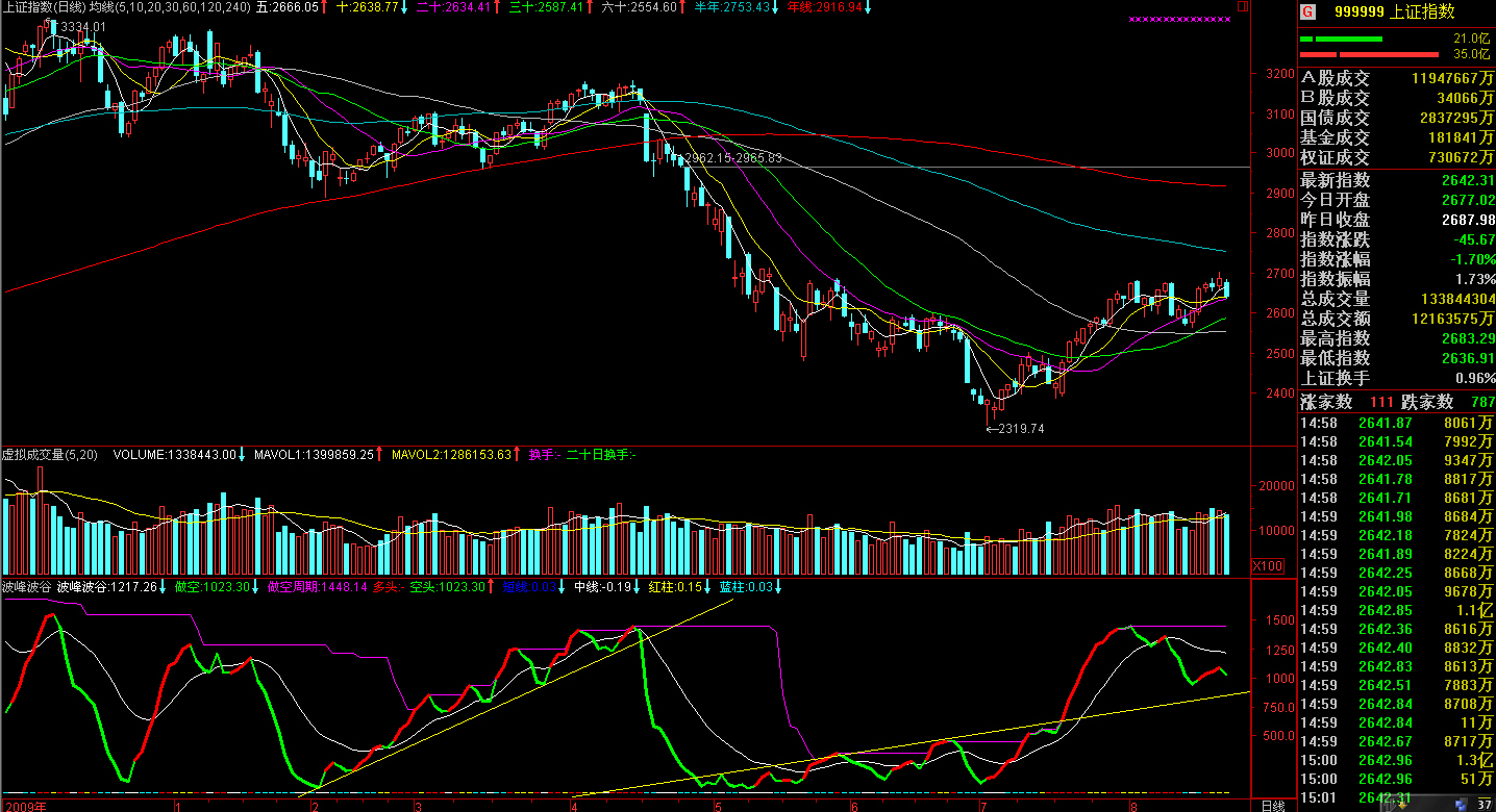相关简介:通达信极品公式波峰波谷副图源码 {公式在线提供: www.gszx.com.cn }