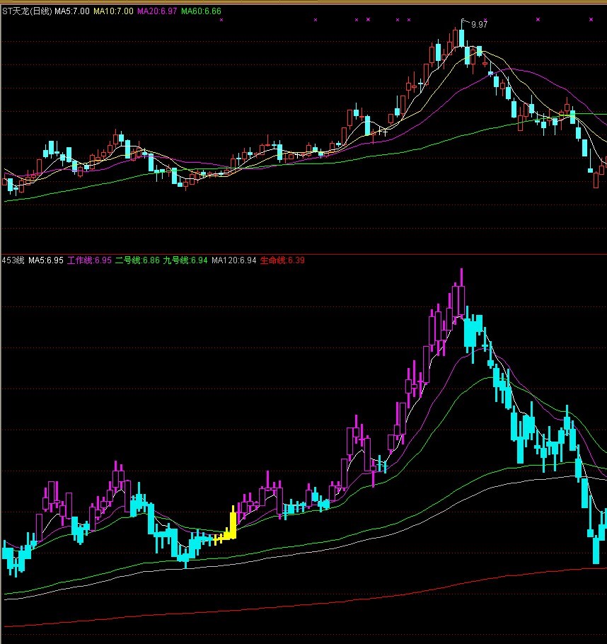 - 生命线:EMA(CLOSE,453),LINETHICK1,COLORRED;