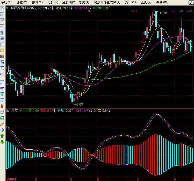 相关简介:通达信无中生有副图指标源码 C/C++ www.gszb.com 股票公式指标网提供 Code 复制内容到剪贴板 无中生有指标源码: 0,COLOR00AA00; 有戏:(EMA(CLOSE,30)-EMA(CLOSE,34))/EMA(CLOSE,34)*100,COLORRED; 无戏:(EMA(C,34)-EMA(C,30))/EMA(C,30)*100,COLORCYAN; XYZ1:(有戏-无戏),COLORMAGENTA; XYZ2:MA(XYZ1,3),C