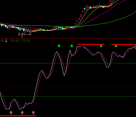 - DRAWICON(CROSS(%K,%D) AND %D<26,0,1);